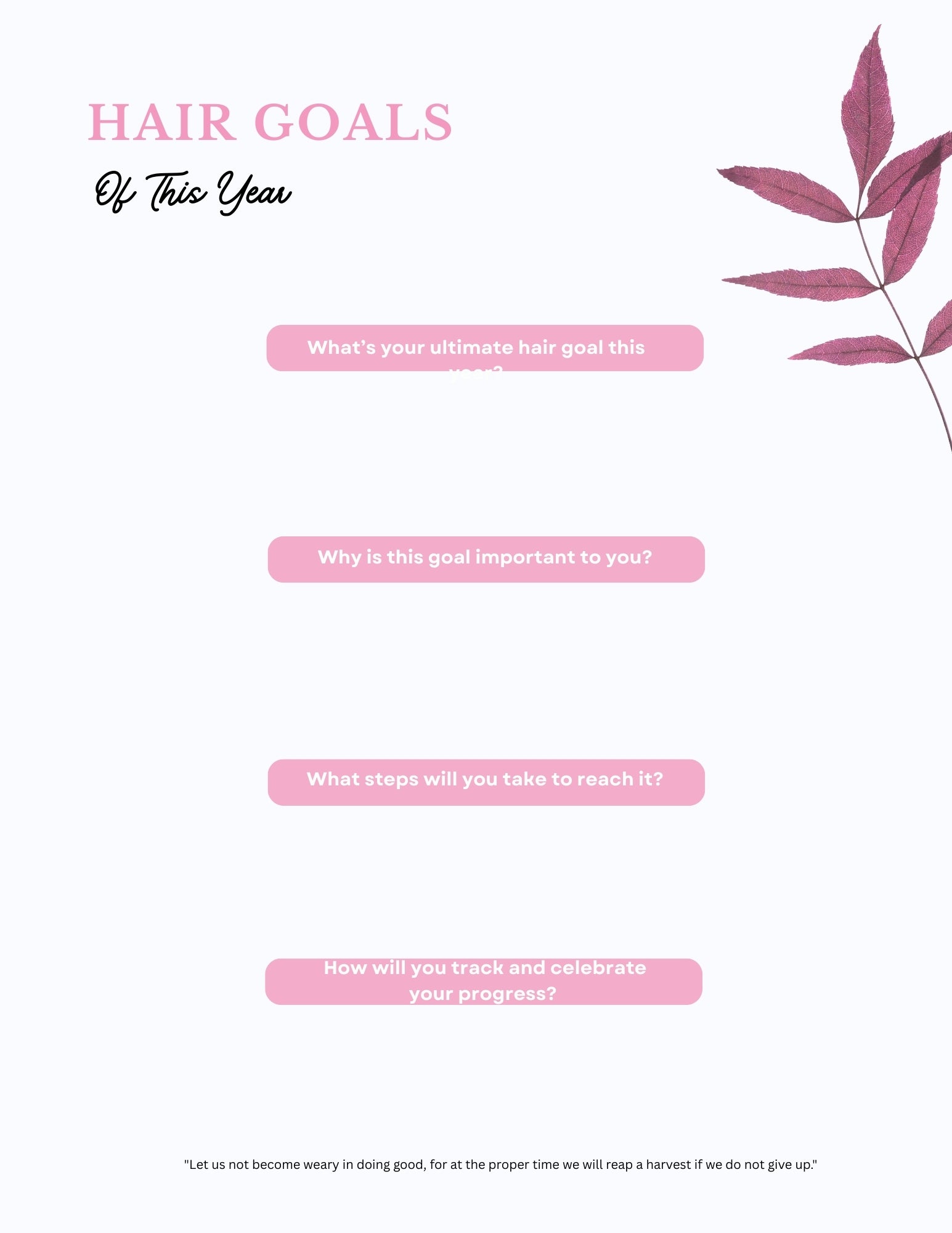 Space to set hair goals for the year and monthly milestones